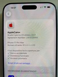 Il prodotto ha garanzia Apple Care+ pagata fino al 23/10/2027 (valore € 229)