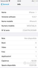 Vendo un Apple iPhone 6 da 64 GB colore Silver (argento), ideale per chi cerca ricambi o per un riparatore che se la cava con il fai-da-te. Non è un telefono da usare in modo quotidiano: si accende ancora, ma l'avvio è lento e in alcuni casi richiede diversi minuti prima di arrivare alla schermata di benvenuto. Il dispositivo è stato ripristinato alle impostazioni di fabbrica e all'accensione si presenta sulla schermata di selezione della lingua Scheda tecnica: modello iPhone 6 con codice MG4F2QL/A (versione italiana), 64 GB di memoria interna, iOS 12.5.7 installato (ultima versione software supportata da questo modello). La batteria ha una capacità massima al 51% e il sistema segnala prestazioni peggiorate in modo significativo, quindi è consigliata la sostituzione. Esteticamente sono presenti i tipici segni d'uso di un dispositivo di diversi anni: graffi e piccoli segni sulla scocca in alluminio, logo Apple posteriore visibilmente usurato, cornice con qualche traccia. Si presta perfettamente al recupero di componenti: display e digitizer, scheda logica, pulsanti volume e power, interruttore silenzioso, connettore Lightning, jack audio, fotocamera posteriore e anteriore, altoparlante, vibrazione, scocca posteriore in alluminio, pulsante Home con Touch ID, antenne. Per chi smonta e ripara è un buon donatore di pezzi. Consegna: ritiro a Rovigo in tranquillità, oppure spedizione con TuttoSubito per chi preferisce ricevere comodamente a casa. Per informazioni su singoli componenti o richieste di foto aggiuntive di dettagli specifici, scrivimi in chat senza problemi.