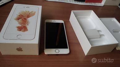 Vendo Apple Iphone 6s da 128gb colore oro rosa, rosè gold. Perfettamente funzionante, completamente sbloccato. Condizioni molto buone (segni minimi, vedi foto) compresi accessori originali: scatola (IMEI combacia), cavo, caricabatterie, auricolari più pellicola applicata e pellicola aggiuntiva. Spedisco in tutta Italia, prezzo NON trattabile. ios 15 e batteria originale 69%. Tutto originale.