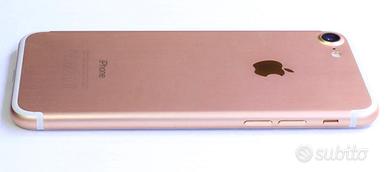 Apple iPhone 7 da 128 GB In OTTIMO STATO (con leggerissimi segni di uso sul corpo del telefono - Display assolutamente senza né segni né graffi) Caratteristiche: iPhone 7 Colore ORO Rosa ( Rose Gold ) Memoria = 128 GB Display da 4,7" NO blocco iCloud - NO Passcode o altra Password (completamente sbloccato) Funziona con una SIM di qualsiasi Operatore Telefonico Tasto Home = OK - Touch ID = OK (sensore impronte digitali ATTIVO) Audio perfetto sia in entrata che in uscita (altoparlanti e microfoni) Capacità Massima Batteria = 100 % Fotocamere senza alcun difetto Alimentatore carica batteria + Cavo USB NO Scatola - No cuffie NO SCAMBI