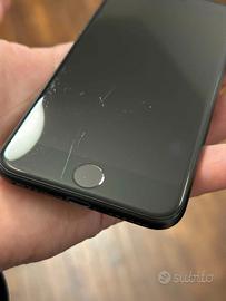 iPhone 7 32GB, colore nero. Schermo con graffi visibili ma vetro totalmente integro. Batteria da sostituire (autonomia molto ridotta). Ideale per pezzi di ricambio, o utilizzo dopo cambio batteria. Venduto con scatola originale.