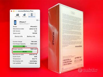 Vendo dalla mia collezione Apple storico iPhone 7 (Model A1778 - MN922QL/A) da 128 GB in colorazione Matte Black usato, ma ottimamente conservato, prodotto il 18-dic-2016.