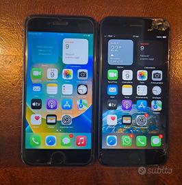 Entrambi perfettamente funzionanti e molto reattivi; ma con schermo rotto: l'iphone 8 ha solo una crepa (5 foto foto, a sinistra) e un leggero graffio sulla scocca posteriore, mentre l'se presenta più crepe e alcune botte sul bordo in basso a destra (ultima foto).