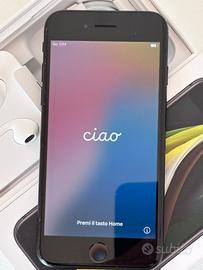 Apple iPhone SE 2020 da 64GB, perfettamente funzionante (Touch ID, fotocamera, audio, ecc.) e in ottime condizioni estetiche; batteria al 74%. Il telefono è sempre stato tenuto con cura, senza graffi evidenti. Completo di: - scatola originale - cuffie Apple originali nuove, mai usate - cavo Lightning originale Apple (NON incluso alimentatore).