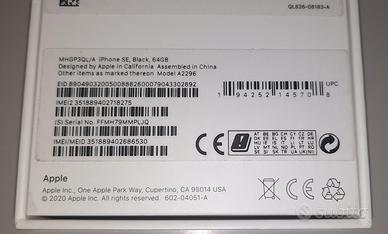 Apple iPhone SE Black 64 GB Scatola vuota Iphone