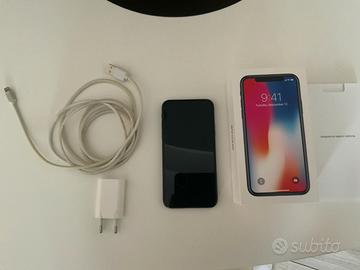Vendo Apple iPhone X 64GB nero in buone condizioni per cambio modello. Il telefono si presenta visivamente in ottime condizioni ( nessun graffio ), Stato batteria 76%. Il telefono è perfettamente funzionante ma la durata è ridotta rispetto al nuovo. L' audio emesso dalle casse è discretamente fluido anche se le casse hanno perso potenza. Batteria all’ 76%. Completo di scatola originale, alimentatore originale e cavo ( non originale ) . Le cuffiette non sono presenti.