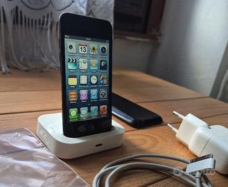 Vendo Ipod Touch di 4a generazione, ancora attuale e performante. Versione Silver da 8GB, più che sufficienti per un ampia libreria musicale! Aggiornato all'ultima versione di IOs, comprende la docking station originale Apple, specifica per questo e altri modelli con attacco nativo, solo questa vale oltre 50 euro! Funziona regolarmente la batteria può variare in durata a seconda dell'utilizzo e condizioni non so quantificare la durata! - iPod Touch 4 - Base di ricarica docking - Cavo di ricarica USB - Alimentatore da muro - Cover protettiva colorata colore variabile