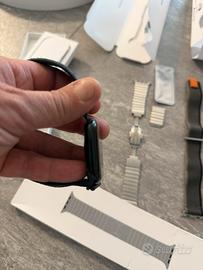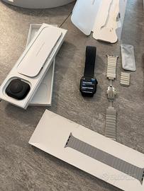 Vendo apple watch 11 gps acquistato a settembre 2025 ancora in garanzia e con apple care. Cinturino originale sport loop, cinturino originale in acciaio con maglie aggiuntive e due cinturini di terze parti., piu cinturino in pelle Hermes .Orologio orginale apple in ottime condizioni, vendo per passaggio a sistema whoop.