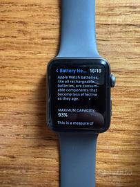Vendo apple Watch 3 Generazione 42mm grigio, cinturino mai usato con cavo, scatola, senza caricabatterie. tutto originale, capacita batteria 93%. come da foto.