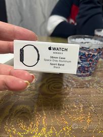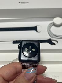 Apple watch 38mm serie 3 colore nero leggermente rovinato negli angoli di sx causa braccialetti (come da foto) completo dei suoi accessori (cavo per carica e cinturino originale)