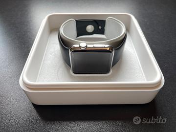 Vendo primissimo modello di Apple Watch con cassa in acciaio inossidabile da 42mm e cinturino Sport in elastomero nero con la fibbia in acciaio.