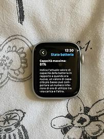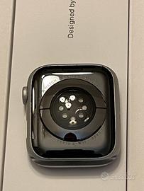 Vendo Apple watch serie 6 alluminio silver 44mm tenuto molto bene, senza graffi su display completo di scatola, cavo usb e cinturino sport loop originale charcoal. Stato batteria 81%. No spedizione.