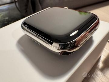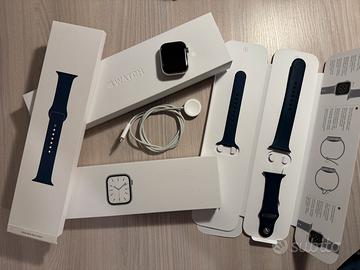 Apple Watch serie 7 Wi-Fi e Cellular con cassa in acciaio Silver da 45 mm. Perfetto senza graffi sulla cassa e display ed é aggiornabile a Watch Os 26. Trattato sempre con cura é perfettamente funzionante con lo stato Batteria all’ 84% che comunque garantisce l’uso per una giornata intera.