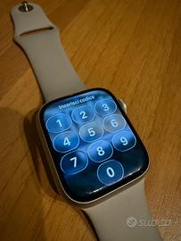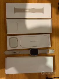 Vendo Apple Watch serie 9 45mm GPS colore galassia, tenuto bene, con batteria 96%. Completo si tutti i suoi accessori.