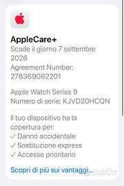 Vendo apple watch serie 9 45mm in condizioni pari al nuovo ancora in garanzia Apple Care come da foto allegata. Vengo per inutilizzo, prodotto perfettamente funzionante