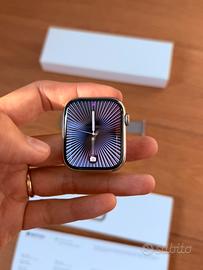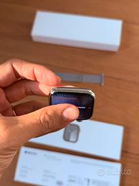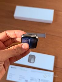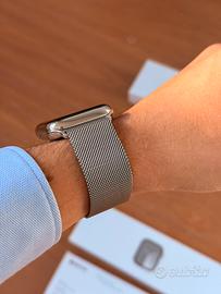 Vendo Apple Watch Series 9 in acciaio, misura 45 mm, con cinturino Maglia Milanese originale.