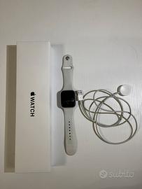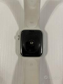 Vendo Apple Watch SE 44 mm Silver Aluminium White Sport Band GPS. FUNZIONANTE Attenzione: VETRO SUPERIORE ROTTO COME DA FOTO DA SOSTITUIRE. Vetro posteriore intatto e sensore ottico perfettamente