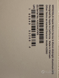 Vendo apple watch serie 9 cassa da 45mm nero versione cellular+GPS(Possibilità di chiamare dell'orologio),è compreso di scatola originale e cinturino versione a strappo,é praticamente nuovo usato pochissime volte non presenta nessun graffio o difetti.Vendo solo con ritiro a mano,prezzo leggermente trattabile,NO PERDITEMPO.