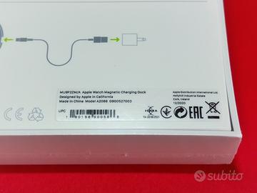Vendo dalla mia collezione Apple Watch Magnetic Charging Dock (Model A2056 - MU9F2ZM/A) nuovo e mai utilizzato. Il prodotto è ancora sigillato e contenuto nella sua confezione di vendita che come potete vedere è in perfette condizioni estetiche. Oggetto prodotto nel mese di Dicembre 2020, introvabile in queste condizioni estetiche. Il prezzo è fortemente condizionato dalle condizioni in cui l'oggetto si trova ed in cui è stato mantenuto inalterato nel tempo. Oggetto da collezione per veri appassionati e cultori dell'Azienda di Cupertino. Prezzo destinato ad aumentare per via della rarità del pezzo. INFORMAZIONI SUL PRODOTTO Panoramica: Con il Dock magnetico puoi ricaricare il tuo Apple Watch appoggiandolo a faccia in su con il cinturino aperto, oppure di lato: in questo caso l’orologio entra automaticamente in modalità Notte, così puoi usarlo anche come sveglia. Il Dock ha un connettore magnetico per la ricarica uguale a quello fornito di serie con Apple Watch, e funziona con tutti i modelli e tutte le misure di Apple Watch. Inoltre si collega tramite il cavo Lightning-USB e l’alimentatore USB Apple da 5W. Cosa c'è dentro: - Dock magnetico per la ricarica di Apple Watch; - Cavo da Lightning a USB; Specifiche: - Diametro: 104 mm; - Altezza: 12,1 mm; Compatibilità Apple Watch: Ultra 2, Ultra, Series 9, Series 8, Series SE, Series 7, Series 6, Series 5, Series 4, Series 3, Series 2, Series 1, prima generazione. Ulteriori info e fotografie solo ai reali interessati.