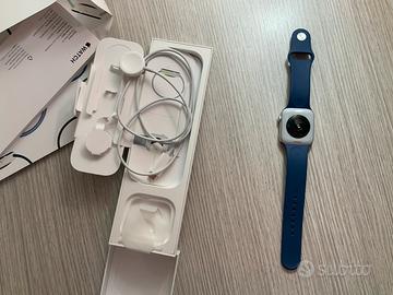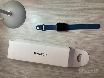 Apple watch SE 44mm cassa argento con cinturino sportivo blu marino. Mai usato, vendo completo di tutto.