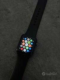 Apple Watch serie 3, 38 mm, perfettamente funzionante, la batteria (come si vede da foto) è a capacità massima 86%. Vendo solamente perché passo a un orologio sportivo diverso. Ha dei segni di usura (come da foto). Posso vendere con scatola originale e assieme a un cinturino a maglia metallica e cavo di ricarica.
