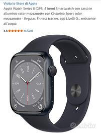 Apple Watch Series 8 Smartwatch con cassa in alluminio color mezzanotte con Cinturino Sport color mezzanotte - Regular. Fitness tracker, app Livelli O₂, resistente all’acqua
