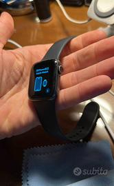Vendo Apple Watch SE (1ª Gen) da 40mm color Grigio Siderale. L'orologio è esteticamente in buone condizioni e perfettamente funzionante in ogni sua parte (sensori, tasti e display). Dettagli sulle condizioni: • Vetro e Cassa: Presenti i normali segni di usura quotidiana (micro-graffi superficiali visibili in controluce), ma nessuna crepa o danno strutturale. • Stato Batteria: La capacità massima è al 68%. L'orologio funziona ancora correttamente, ma l'autonomia è ridotta rispetto al nuovo (ottimo per chi ne fa un uso leggero o vuole approcciarsi al mondo Apple Watch con una spesa minima). • Accessori: Inclusi cinturino Sport nero e cavo di ricarica originale. Prezzo: €55 (Prezzo ribassato tenendo conto dello stato della batteria).