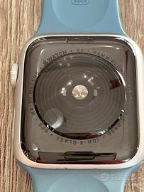 Vendo Apple Watch SE 44 mm Silver aluminium case con cinturino azzurro originale taglia M/L. No graffi.