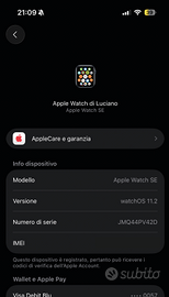 Vendo Apple Watch SE di 2ª generazione (modello 2023), versione GPS + Cellular da 40mm con cassa in alluminio.