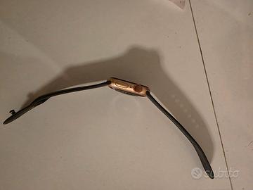 Cassa color oro rosa con cinturino sport scuro, comodo e regolabile; nessun danno strutturale, normale usura da utilizzo ma display e tasti funzionano perfettamente.