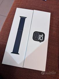 Vendo per inutilizzo Apple Watch serie 10 46mm, l'orologio ha due mesi di vita in quanto è stato utilizzato forse per 10 volte. La batteria come si vede in foto è sempre al 100%. Insieme regalo due cover protettive e cinturino elegante.