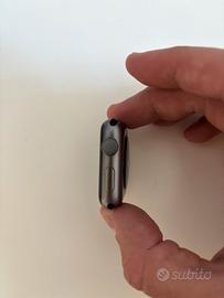 Apple Watch Series 3 (42mm) in Space Gray, in condizioni complessive discrete. Presenta lievi segni di utilizzo, tra cui un graffio sul vetro frontale e alcune piccole ammaccature sulla cassa, ma niente di particolarmente evidente. Completamente funzionante e perfettamente operativo. Vendo per l’aggiornamento a un modello più nuovo. Nota: venduto senza cinturino.