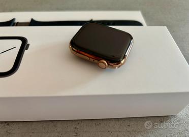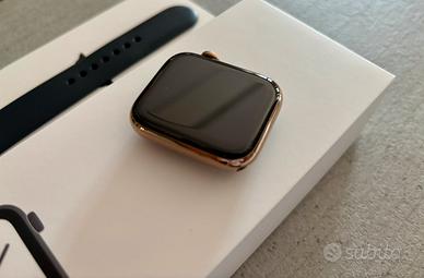 Come da titolo, vendo smartwach Apple serie 4 versione cellular, ovvero predisposto all' E-SIM per fare e ricevere chiamate senza telefono. È la versione oro in acciaio e non in alluminio. Vendo compresivo si scatola e cavo di ricarica. Regalo inoltre pellicole protettive. Prezzo gia scontato, non trattabile