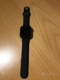Apple watch con alcuni segni di usura (presenta un graffio sull’angolo in basso a destra), funzionante e senza rallentamenti. Venduto insieme alla sua scatola originale, il cinturino invece non è originale.