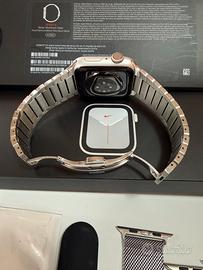 Apple Watch Serie 6 44mm GPS + Cell colore Silver Alluminio, con il suo cavetto originale di ricarica la sua Scatola Originale, Tenuto bene e perfettamente funzionanante , in più compresi 6 cinturini, di cui un cinturino nuovo Maglia Milano, uno cinturino mai usato in acciaio con maglie aggiuntive mai usato, un cinturino in gomma colore nero con fori verdi, due cinturini in tussuto di vari colori, due protezione per la cassa e quadrante. Faccio presente che nella parte posteriore è presente un lieve graffio e sul quadrante un lievissimo graffio quasi invisibile. Il tutto come da foto