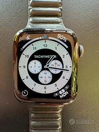 Vendo Apple Watch serie 6 44mm in ottime condizioni. Touch, tasto laterale, Digital Crown e sensori funzionano perfettamente! Leggero graffio sullo schermo, ma impercettibile nell’uso quotidiano. Disponibili anche - cinturino Nike Sport (nero) - cinturino Solo loop intrecciato (nero) Per ulteriori informazioni, foto o dubbi non fatevi problemi a contattarmi!