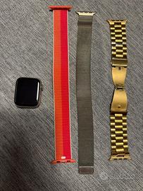 Vendo apple watch serie 6 44mm color oro in acciaio in buone condizioni perfettamente funzionante completo di carica tre cinturini e cover schermo