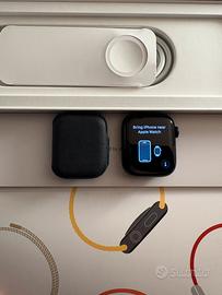 Vendo Apple Watch serie 7 con quadrante da 41 mm per passaggio a serie 11. Orologio perfettamente funzionante. Vendo con cinturino originale (2 taglie), cinturini aggiuntivi e 2 copri quadranti. Scatola originale con caricatore e protezione quadrante in tessuto.