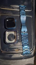 Apple Watch ottime condizioni. Usato 2-3 volte. Protezione cassa. Cinturino in acciaio blu acquistato a parte. Qualche graffietto sulla cassa, ma nulla piú. Cavo ricarica. Batteria top. ORIGINALE.