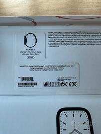 Vendo Apple Watch Serie 7 41mm GPS in ottime condizioni senza nessun segno di utilizzo e perfettamente funzionante. Batteria per uso medio, IOS 26.2 ultimo aggiornamento Comprensivo di: caricatore, cover nuova, cinturino nuovo e con scatola originale. Prezzo leggermente trattabile e con consegna a mano.