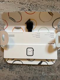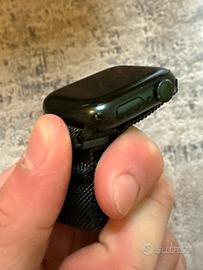 41mm, purtroppo ha tre piccoli difetti, due sigli angoli e uno sullo schermo, ma perfettamente funzionante, vendi con cinturino compreso originale apple
