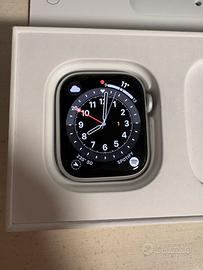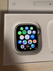 Vendo Apple Watch Serie 8 41 mm GPS Colorazione Silver Alluminium. Con capacitá batteria al 100% completo di scatola, cavo magnetico per ricarica, 4 cinturini,cover di gomma,pellicole protettive.