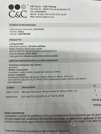 Vendo Apple Watch Serie 8 color Midnight Blue **come nuovo**, appena **sostituito da Apple** (come da documento allegato). La **batteria è al 100%** e l’orologio non presenta **alcun difetto visivo**. Incluso nella vendita: * **Scatola originale** * **Caricatore Apple mai usato**, ancora incartato * **Cinturino originale mai indossato** * **Vetro protettivo già applicato** * **Cover in silicone inclusa** Prodotto davvero pari al nuovo. **Preferisco scambio a mano** così puoi vedere e provare l’orologio di persona, ma posso anche **spedire tramite TuttoSubito**. Per info o foto aggiuntive scrivimi pure in privato!