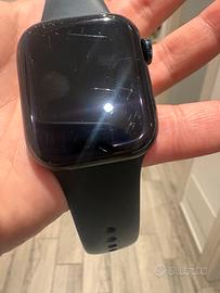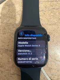 Vendo Apple Watch Series 8 causa passaggio a modello superiore. L'orologio è perfettamente funzionante in ogni sua parte (sensori, touch, ECG). Batteria: Stato ottimo, capacità massima sopra il 90%. Estetica: Presenta graffi visibili sul vetro (come da foto), che però non ne pregiudicano l'uso né la visibilità del display acceso. Incluso: Scatola originale, cavo di ricarica magnetico e cinturino sport.