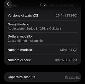 Vendo apple watch 8 gps + cellular in alluminio grigio siderale compreso di scatola cinturino. Watch perfetto in tutte le funzioni. Presenta normali segni da utilizzo. Scambio a mano a brescia o spedizione tramite subito