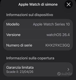 Apple watch pari al nuovo con batteria al 100%. In garanzia sino al 26/04/2026 Preferenza consegna a mano