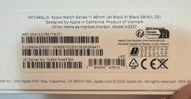 Vendo Apple Watch Series 11 46mm Cellular + GPS colore nero, acquistato il 20 ottobre 2025