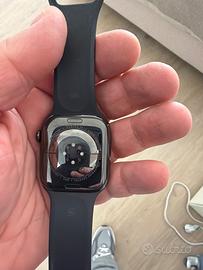 Stupendo Apple Watch Series 11 GPS + Cellular, Cassa 46 mm in titanio ardesia con Cinturino Sport nero - M/L acquistato 21/09/2025 con regolare scatola e scontrino ancora in garanzia per 18 mesi pagato circa 900 euro imensioni e peso Altezza: 46 mm Larghezza: 39 mm Spessore: 9,7 mm Peso (alluminio, GPS): 37,8 g Peso (alluminio, GPS + Cellular): 36,9 g Peso (acciaio inossidabile): 43,1 g Per polsi da 140-245 mm Audio Altoparlante Microfono Riproduzione di contenuti Controlli Digital Crown con feedback aptico Tasto laterale Gesti doppio tap e scatto del polso Siri Display Display Retina OLED LTPO3 always‑on con ampio angolo di visualizzazione Display in vetro Ion‑X due volte più resistente ai graffi (casse in alluminio) Display in cristallo di zaffiro (casse in titanio) Fino a 2000 nit di luminosità di picco Luminosità minima 1 nit 326 pixel per pollice Chip Chip S10 con processore dual‑core a 64 bit Neural Engine 4‑core Capacità 64GB Salute e benessere App Livelli O₂ App ECG App Monitoraggio ciclo con stime retrospettive dell’ovulazione App Battito cardiaco Notifiche frequenza cardiaca troppo alta o troppo bassa Notifiche ritmo cardiaco irregolare App Farmaci App Mindfulness App Rumore App Sonno con funzione “Fasi del sonno” Qualità del sonno Notifiche apnea notturna Notifiche ipertensione