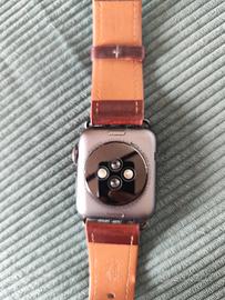 Orologio Apple serie 2 pronto ad essere configurato su nuovo account, tenuto molto bene con cinturino in vera pelle color marrone.