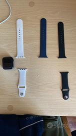 Vendo apple watch per scarsità di utilizzo. Come possibile notare dalla foto ho scatola originale, cinturino originale (quello blu) e caricatore. In aggiunta sono presenti altri due cinturini e una cover per l’orologio che non sono originali. Prezzo trattabile causa mancanza una di due parti cinturino blu. Per il resto è in condizioni ottime